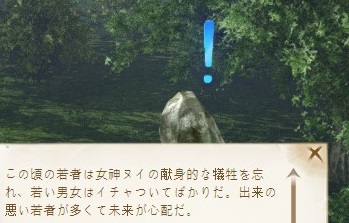 最初の村からクエストを追いかけて進んでいくと、過去の歴史が刻まれたメンヒル
