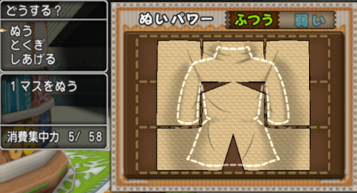 生産はどれもミニゲーム風になっていて、裁縫の場合はぬいパワーを見ながら