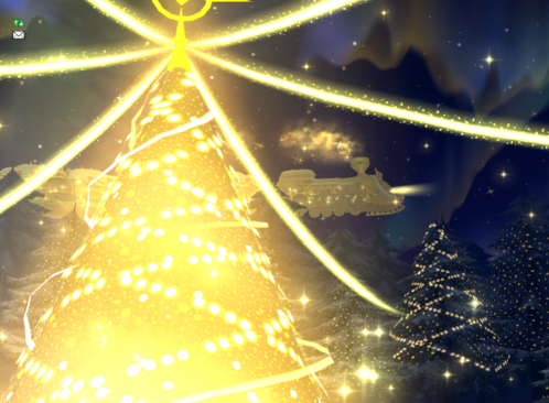 空からソリ…じゃなくて光り輝く列車が降りてきて…。 ![]()